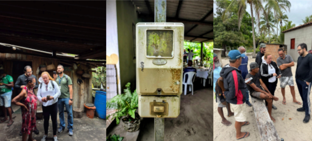 Entre os dias 10 e 11 de novembro de 2025, na Reserva Extrativista (RESEX) Marinha de Canavieiras, no sul da Bahia, aconteceu uma visita técnica de monitoramento do acesso à energia elétrica em territórios extrativistas. Representantes do Ministério de Minas e Energia (MME), Agência Nacional de Energia Elétrica (ANEEL) e da RE&C – representada pelo WWF-Brasil e Instituto de Energia e Meio Ambiente (IEMA) – estiveram em comunidades da RESEX, acompanhados pelas lideranças comunitárias da Associação Mãe dos Extrativistas da RESEX de Canavieiras (AMEX) e do ICMBio.A atividade teve como objetivo avaliar, de forma participativa e técnica, as condições de acesso à energia elétrica, a qualidade do fornecimento e a implementação do Programa Luz para Todos nesses territórios já considerados universalizados com energia elétrica.Esse momento sintetiza, igualmente, demandas identificadas ao longo dos Encontros de Monitoramento Energético realizados em 2025, organizados pela Rede Energia & Comunidades. Destacam-se os encontros realizados no território indígena Wawi, no Xingu (MT), em comunidades quilombolas de Abaetetuba (PA), incluindo Bom Remédio e Piratuba, e em comunidades extrativistas na Reserva Extrativista (RESEX) Marinha de Canavieiras na Bahia. Nessas ocasiões, a formação comunitária em energia emergiu de forma recorrente como uma demanda estratégica, entendida pelas comunidades como condição necessária  para um acesso mais justo, digno e qualificado à energia elétrica. O fortalecimento das capacidades locais contribui para aprimorar a interlocução com as instituições responsáveis pela prestação do serviço público de energia, fortalecer a fiscalização social e assegurar a efetivação dos direitos das populações enquanto consumidoras reguladas.